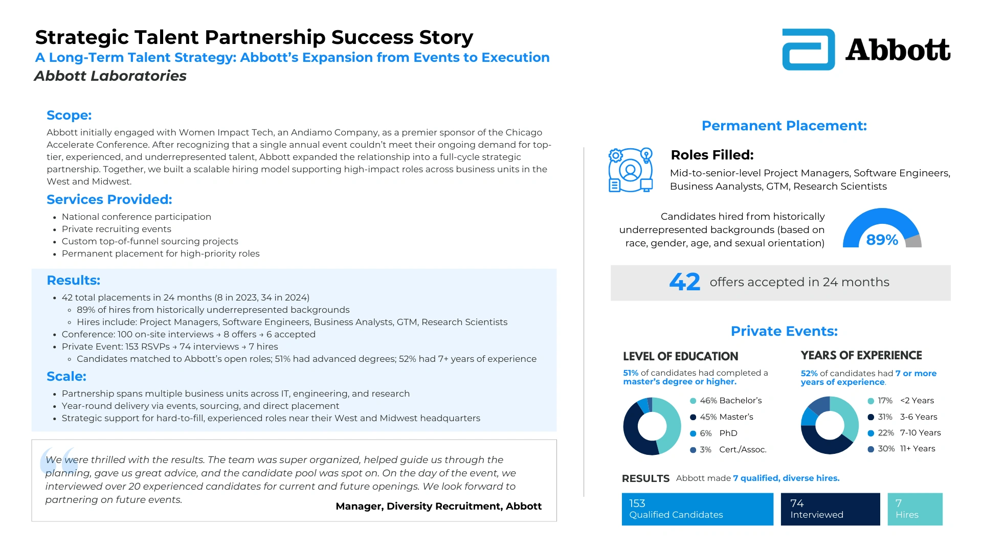 Best-in-class staffing solutions. Our staff augmentation model provides scalable flexibility for your projects, strategic initiatives, and one-off hiring needs. Our industry-leading recruiters work closely with your hiring teams and HR to achieve your hiring goals.