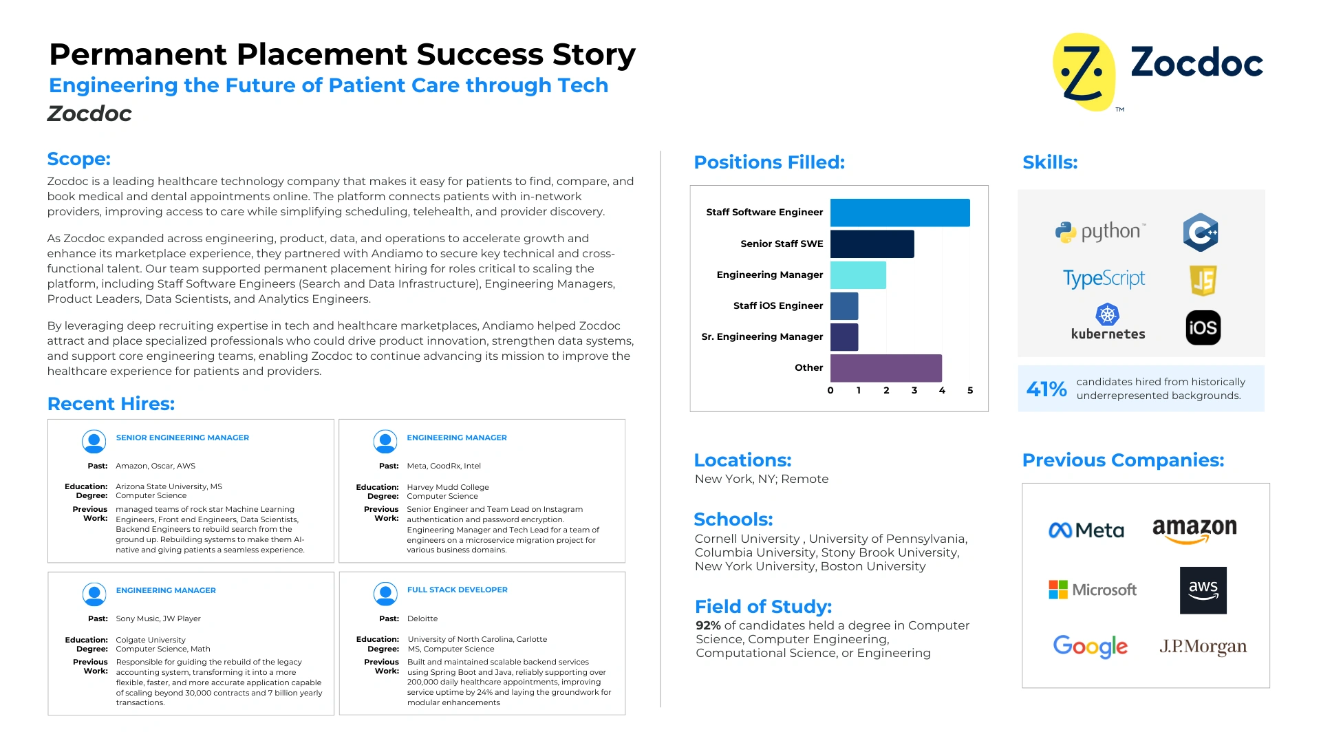 We’ve built a recruiting engine that helps our partners attract high-caliber, passive mid-to-senior level technologists. Our Recruiters and Account Managers work with client partners to consistently deliver the top 2% of passive talent, including: engineers, data, security, leadership, and project professionals. We are experts at placing a variety of professionals at both large and small companies.